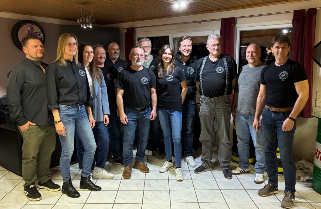 (V.l.n.r.) 2. Vorsitzender Winkelmann Tobias, Schriftführerin Haubner Birgit, Jugendwartin Gökmen Alexandra, Gerätewart Socher Ewald, Tourenwart Vasas Robert, Sportwart Straßmeir Thomas, Vergnügungswart Gaßner Robert, Pressewartin Elsner Corina, Kassier Ochmann Michael, Verkehrsreferent Schindler Klaus, ADAC-Delegierter Heidenreich Bernhard, 1. Vorsitzender Haubner Michael.